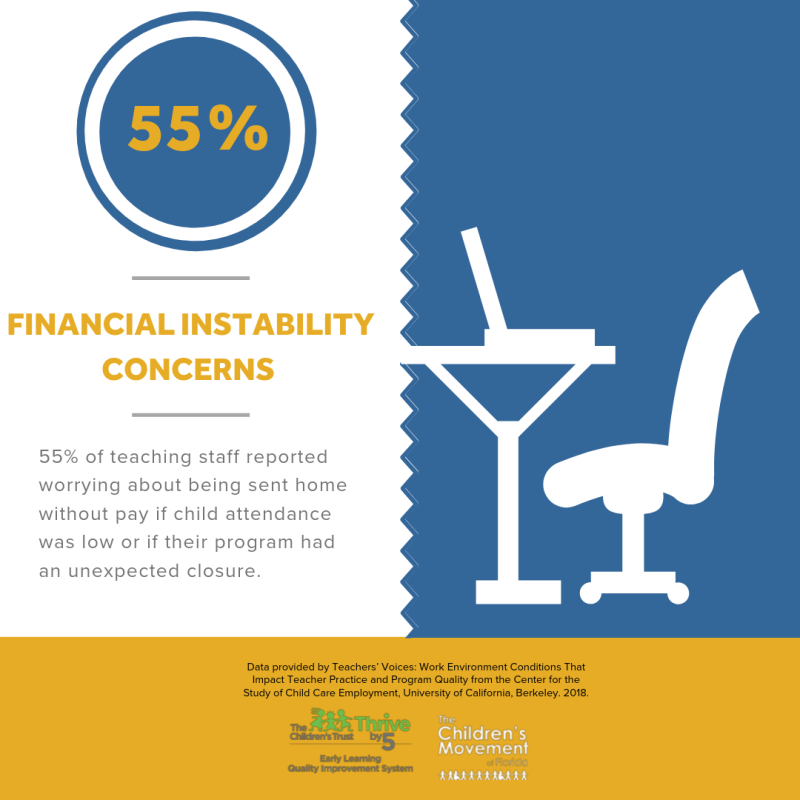 55% of teaching staff reported worrying about being sent home without pay if child attendance was low or if their program had an unexpected closure.